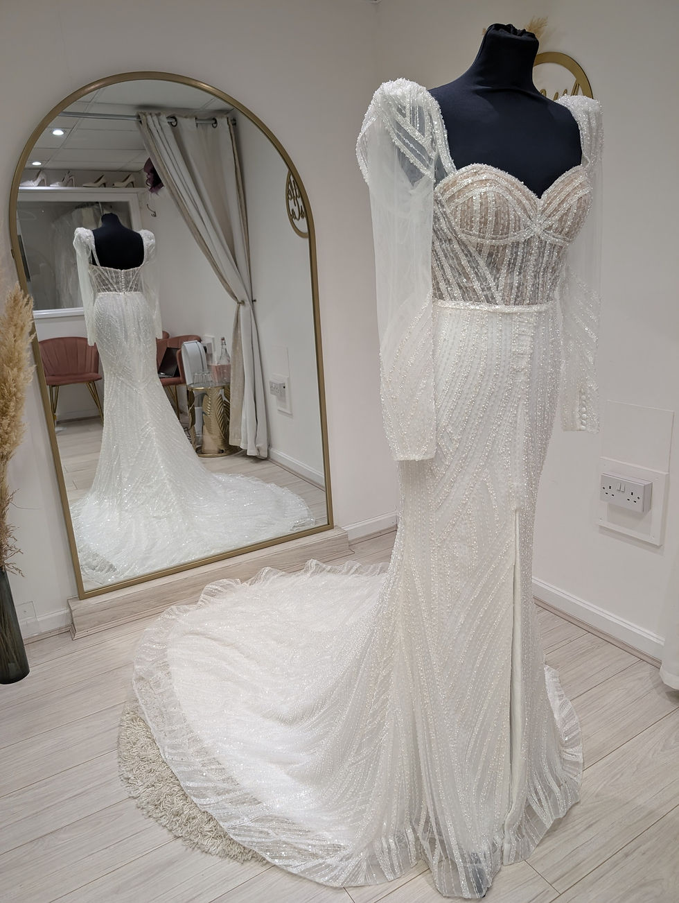 A selection of our current gowns are shown below. We receive new stock frequently so there are always more dresses in the studio than we can show online - please book an appointment with us to view the full collection. Our dresses are ex-sample or preloved and whilst we take the upmost care to keep our gowns in pristine condition please note there may be some slight imperfections.